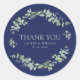 Elegante boda de acuarela azul marino y verde salvia eucalipto gracias pegatinas. Personalice esto por pegatina, agregando su propio nombre y detalles para hacerlo propio. Perfecto para sellos para sobres, regalos a favor y más y para una boda en otoño.