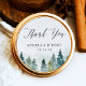 Pegatina Redonda Boda de la Moda de Pinos Forestales de Invierno Gr