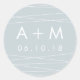 Personalice estos sellos simples con sus iniciales y fecha de boda para una forma de moda de terminar sus invitaciones, favores y más. El diseño presenta unas letras blancas depuradas sobre un fondo de agua color pastel y cruzado con líneas geométricas blancas. Diseñado para coincidir con nuestra colección de invitaciones a bodas de Lineation en verde gris Jade.