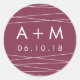 Personalice estos sellos simples con sus iniciales y fecha de boda para una forma de moda de terminar sus invitaciones, favores y más. El diseño presenta unas letras blancas depuradas sobre un fondo de bayas burdeos profundo, entrecruzado con líneas geométricas blancas. Diseñado para coincidir con nuestra colección de invitaciones a bodas de Lination en Marsala.
