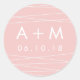 Personalice estos sellos simples con sus iniciales y fecha de boda para una forma de moda de terminar sus invitaciones, favores y más. El diseño presenta letras blancas limpias en un fondo rosa y rosa con un entrecruzamiento de líneas geométricas blancas. Diseñado para coincidir con nuestra colección de invitaciones a bodas de Lination en Rubor.