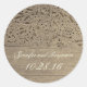 Pegatina Redonda Boda de madera con flores rusticas grabadas