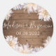 Pegatina Redonda Boda de madera Rústica Rosa Dahlia Flower Date