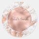 Pegatina Redonda Boda de mármol blanco Glitz Rose Gold