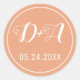 Sencillas y elegantes iniciales boda de melocotón pegatina de sello para sobres redondo. Coordina con nuestra suite boda "Peach watercolor cactus flowers".