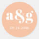Pegatina Redonda Boda de melocotón monograma simple y elegante