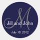 Pegatina Redonda Boda de Monograma Azul de la Armada Novia Groom Fe