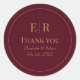 Pegatina Redonda Boda de Monograma Borgoña Moderno Gracias