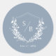 Elegante Clásico Dusty Azul Monograma Escudo Boda Clásico Pegatina Redondo