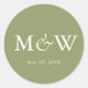 Pegatina Redonda Boda de Monograma Clásico Verde Moss Moderno