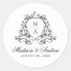 Pegatina Redonda Boda de Monograma de Cresta Floral Negra Elegante