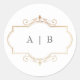 Pegatina Redonda boda de monograma de oro clásico romántico