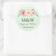 Boda monograma favorece a los pegatinas de etiquetas en flores color agua rosada con fondo verde menta. Una gran manera de decorar los favores matrimoniales.