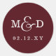 Pegatina Redonda Boda de monograma moderno simple de Borgoña