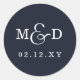 Pegatina Redonda Boda de monograma moderno simple de la marina