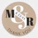 Pegatina Redonda Boda de Monograma Rústico Kraft Ampersand Gracias