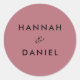 Pegatina Redonda Boda de nombres personalizados Rosa Gold simple