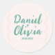 Boda rosa y verde ondulante Pegatina redondo clásico