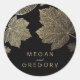 Pegatina Redonda Boda de Oro Caído y Hojas Negras