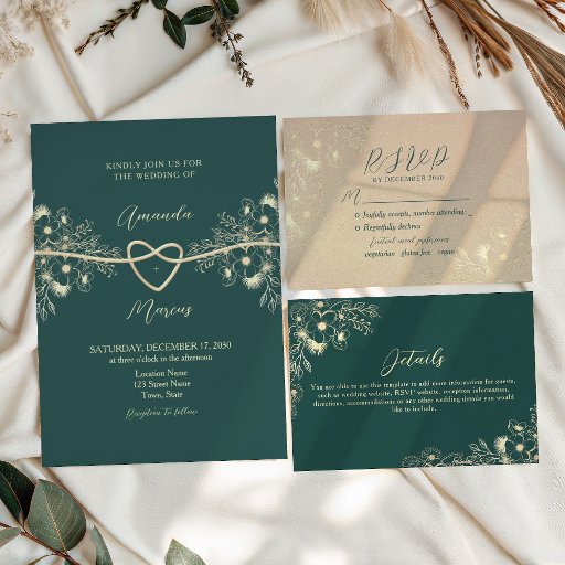 Emerald Green Gold Floral Wedding Invitation SuiteDiseñado por Yana Bor