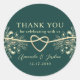 Elegante boda de corazón verde esmeralda y cuerda dorada gracias pegatina con acentos florales. Perfecto para sellar bolsos de regalo, cajas de regalo o sobres. Una buena forma de agradecer a sus clientes mientras se coordina con la suite boda esmeralda y dorada.