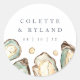 Estos pegatinas de la costa favorecen a las bodas y cuentan con ilustraciones de ostras y perlas de color crema suave y agua acuática, con nombres y fecha boda en letras clásicas de color azul marino. Ideal para las celebraciones de bodas náuticos, de verano o de temática playera.