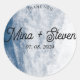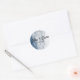 La etiqueta redonda clásica Boda de playa con acuarela azul costa océano presenta un diseño costero sereno en tonos azules suaves, perfecto para agregar un toque de elegancia costera a invitaciones de boda, favores y decoración.