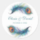 Agregue un toque de encanto regio a los detalles y decoraciones de su boda con nuestra "Calcomanía redonda clásica de boda con pluma de pavo real azul turquesa". Estas elegantes calcomanías presentan la fascinante belleza de las plumas de pavo real azul turquesa, que emanan sofisticación y atractivo.