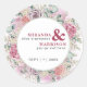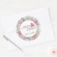 Bonito acuarela diseño de rosas enmarcan este encantador pegatina redondo que sostiene sus nombres en negrita - perfecto para sobres bodas, favores y mucho más.