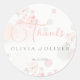 Pegatina redondo clásico boda con flores de rosas de té rosa suave y melocotón, primavera de color pastel y estampado floral de verano. Fondo botánico rosa de Rubor. Elegante floral floral Boda botánico Pegatina redondo clásico. Colección de Rosas de té suaves.