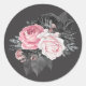 Pegatina Redonda Boda de Rosas rosados y negros