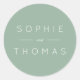 Este pegatina boda presenta los nombres de la pareja boda en blanco contra un fondo de color de sabio claro. Consulta otros elementos bodas coincidentes https://www.zazzle.com/collections/peach_layered_geometric_light_sage_wedding-119919264900833968?rf=238364477188679314&tc=rc . Personalízalo reemplazando el texto del marcador de posición. Para obtener más opciones como cambiar el tipo de letra, su tamaño y espaciado entre letras haga clic en el botón "Personalizar". *Tenga en cuenta que la marca de agua Zazzle que aparece en la vista previa del zoom NO aparecerá en el producto impreso final. © Rosewood y Citrus