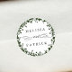 Pegatina Redonda Boda de silueta blanca de flor silvestre verde
