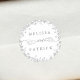 Este elegante pegatina de bodas cuenta con una silueta de flores silvestres como corona de flores con sus nombres. Para una personalización más avanzada de este diseño, haga clic en el BOTÓN HERRAMIENTA DE DISEÑO AZUL de arriba. También están disponibles los elementos coincidentes.