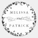 Pegatina Redonda Boda de silueta de flores silvestres negro y blanc