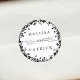 Este elegante pegatina de bodas cuenta con una silueta de flores silvestres como corona de flores con sus nombres. Para una personalización más avanzada de este diseño, haga clic en el BOTÓN HERRAMIENTA DE DISEÑO AZUL de arriba. También están disponibles los elementos coincidentes.
