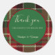 Este boda le agradece a su pegatina que viene en diferentes tamaños, formas y papeles. Es personalizable con sus Intros, nombres y o monogramas. La combinación armoniosa de un patrón escocés rojo verde es armoniosa, con tonos verde claro y tipografía blanca. La cubierta verde redondeada mínima con un borde borgoñón es para su personalización. Hobinishop