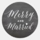 Pegatina Redonda Boda de vacaciones de pizarra negra Casados y aleg