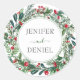 Pegatina Redonda Boda de vegetación de invierno rústico Berry Pine