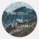 Pegatina Redonda Boda de verano en la playa azul del océano moderno