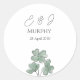Pegatina Redonda Boda del amante de la hoja verde acuarela