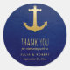 Pegatina Redonda Boda del Ancla del Relieve metalizado dorado Navy