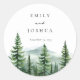Pegatina redondeado clásico del Boda del bosque de pinos rústicos
