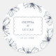 Pegatina Redonda Boda del marco de la onda floral azul minimalista