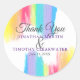 Hermoso boda arco iris gracias pegatina con bonito, pinturas artísticas con trazos llenos de color brillante. Esta colorida etiqueta de fiesta es perfecta para una pareja artística o para una recepción gay y lesbiana. El diseño alegre se acentúa con la tipografía violeta audaz.