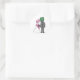 Pegatina Redonda Boda divertida de novia y novio dinosaurio T-rex