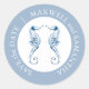Diseñado para coordinarse con mi tema clásico de acuarela costera, este pegatina cuenta con caballos acuáticos en tonos azules. Personalizar con sus nombres, guarde la fecha, o lo que quiera en blanco sobre un polvoriento fondo azul. Usar como sello para sobres, etiquetas de favor o etiquetas de regalo personalizadas.