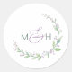 Pegatina Redonda Boda en monograma verde morado