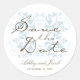 Pegatina Redonda Boda Floral Azul Bebé Salva La Fecha