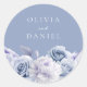 Pegatina Redonda Boda floral azul y blanco turbio